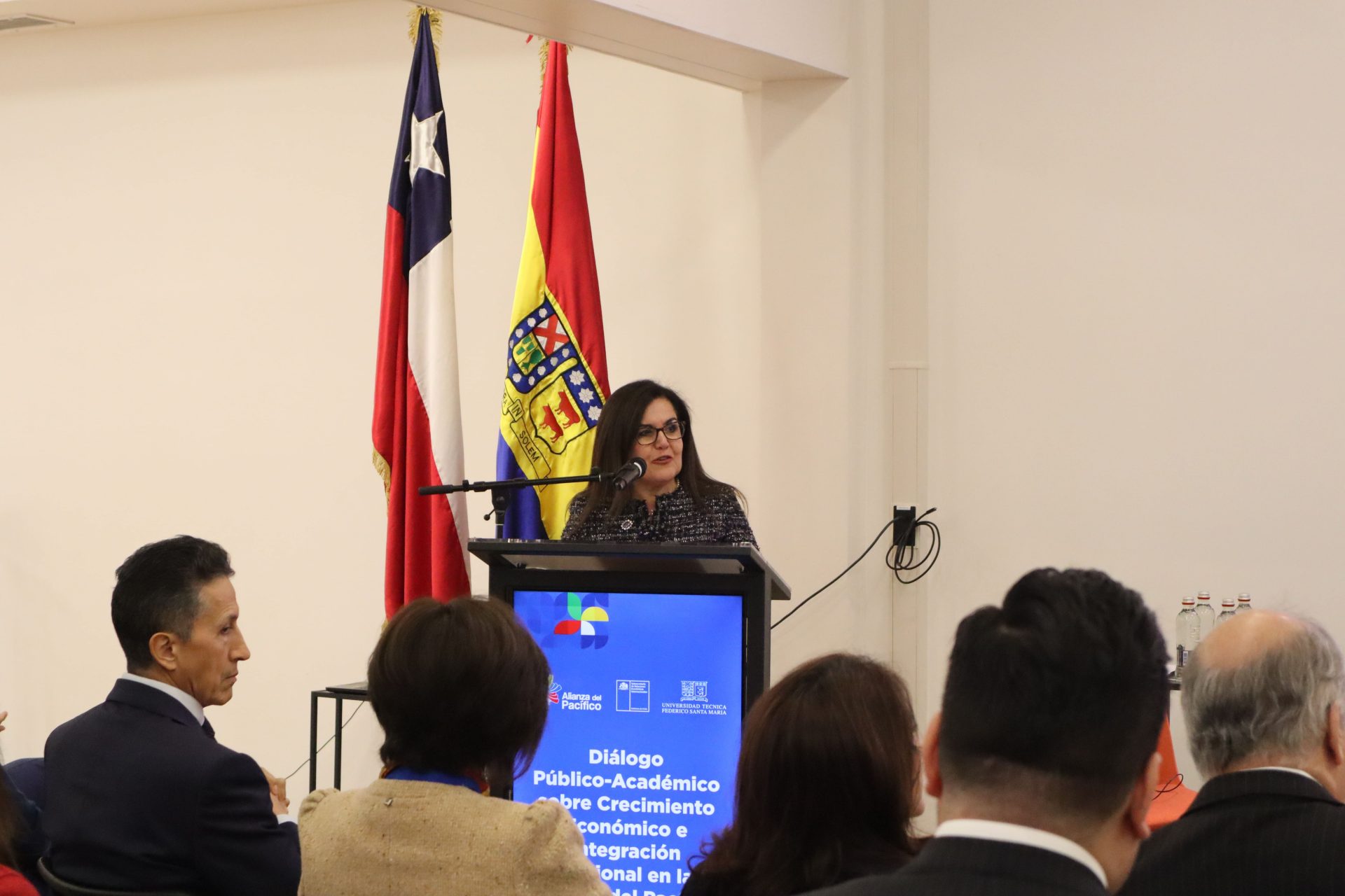 Desarrollo económico y participación de las instituciones educativas en el futuro de Latinoamérica fueron los focos del “Diálogo Público-Académico sobre Crecimiento Económico e Integración Regional en la Alianza del Pacífico”, actividad gestionada por la Subsecretaría de Relaciones Económicas Internacionales del país y realizada en instalaciones de la Universidad Técnica Federico Santa María, y que contó con la presencia de algunas de las principales autoridades de los países miembros de la organización.
