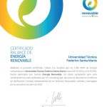 Verónica Díaz, Directora de Servicios y Administración de la USM, señala que “este reconocimiento certifica que la entrega de energía para ambos Campus por la empresa Colbún es 100% renovable, lo que tiene relevancia, ya que nuestras emisiones de CO2 bajan considerablemente contribuyendo a disminuir nuestra huella de carbono. Además, nos permite transitar hacia un impacto ambiental neutro, que es un lineamiento de nuestra política institucional de sostenibilidad y medioambiente”.