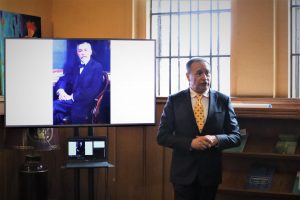 Además, el director del Museo Institucional UTFSM, profesor Juan Ayala ,expuso frente a los delegados la historia del fundador, don Federico Santa María Carrera y los principales hitos en torno a la creación de la casa de estudios.