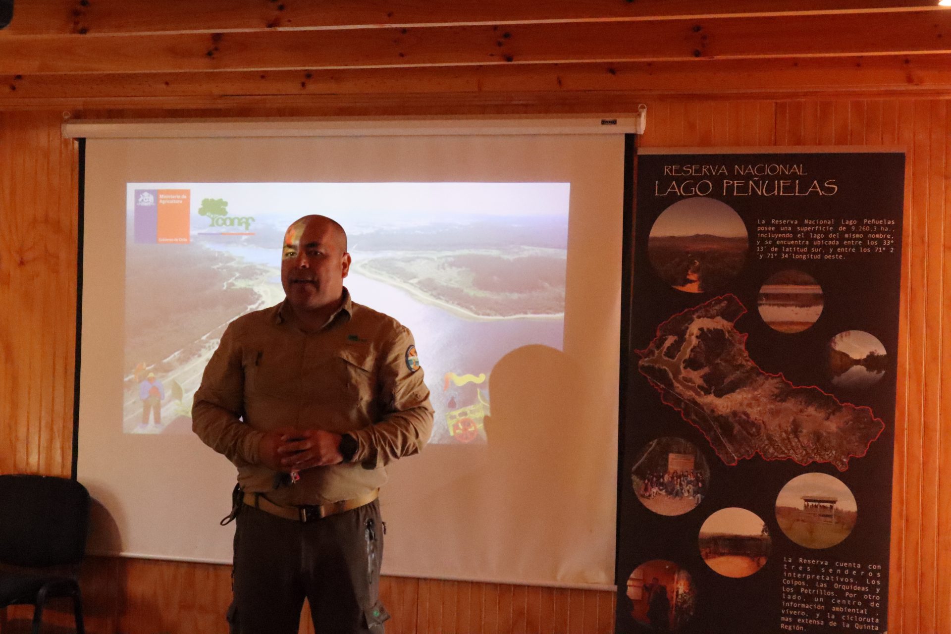 En el marco de las actividades de difusión de este proyecto de vinculación internacional, el panel se reunió en la Reserva Nacional Lago Peñuelas a fin de exponer diversos temas relacionados a los incendios forestales, su combate y prevención, al alero también de la Corporación Nacional Forestal, Conaf.