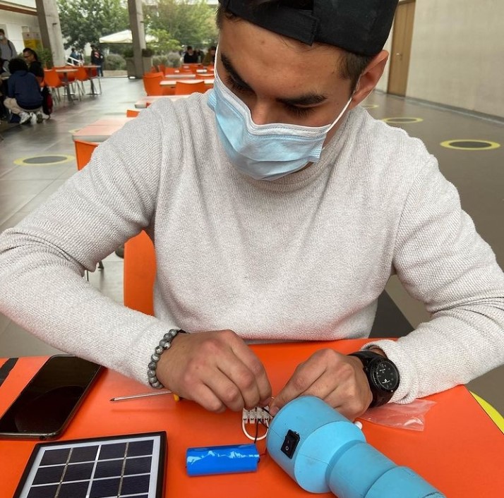 Los sansanos Nicolás Díaz y Javiera Ramos participaron del primer taller de armado de luminarias, realizado el jueves 12 de mayo. “Estas instancias son muy entretenidas y nos acercan al conocimiento de este tipo de energías de manera práctica”, comenta Díaz. Por su parte, Javiera Ramos afirma que “como futuros ingenieros, estamos estudiando para mejorar el planeta y encontrar soluciones para la comunidad, por lo que me parece muy bueno y entretenido participar de este tipo de actividades”.