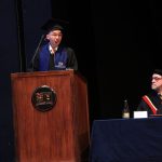Al finalizar la ceremonia, el Secretario General de la USM, Jerome Mac Auliffe, procedió a tomar juramento a los nuevos profesionales que se titularon de esta casa de estudios, sellando así su compromiso de servicio a la comunidad.