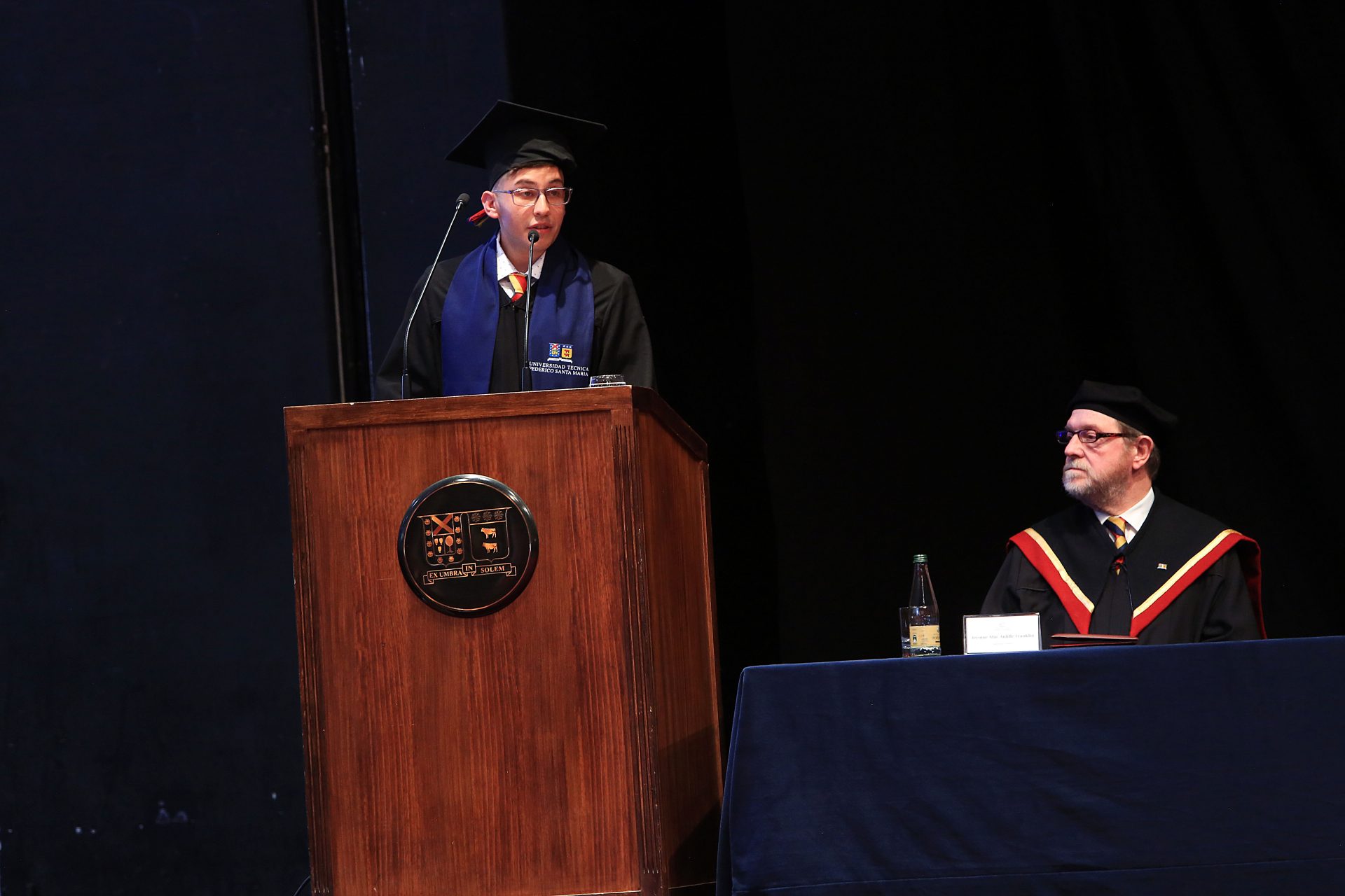Por su parte, Matías Aranda, titulado de Técnico Universitario en Biotecnología del Departamento de Química y Medio Ambiente de la sede Viña del Mar, en un emotivo discurso realizado en el teatro Aula Magna de la casa de estudios, señaló que “mi mayor enseñanza es que lo imposible se vuelve posible cuando hay un equipo motivado. En mi reciente experiencia laboral, muchas veces me sentí abrumado por las exigencias y expectativas crecientes, pero con una mentalidad de principiante, esa montaña de estrés se transformó en un camino de oportunidades que enriquecieron mis habilidades y mi oficio, guiándome hacia el profesional que aspiro a ser.”